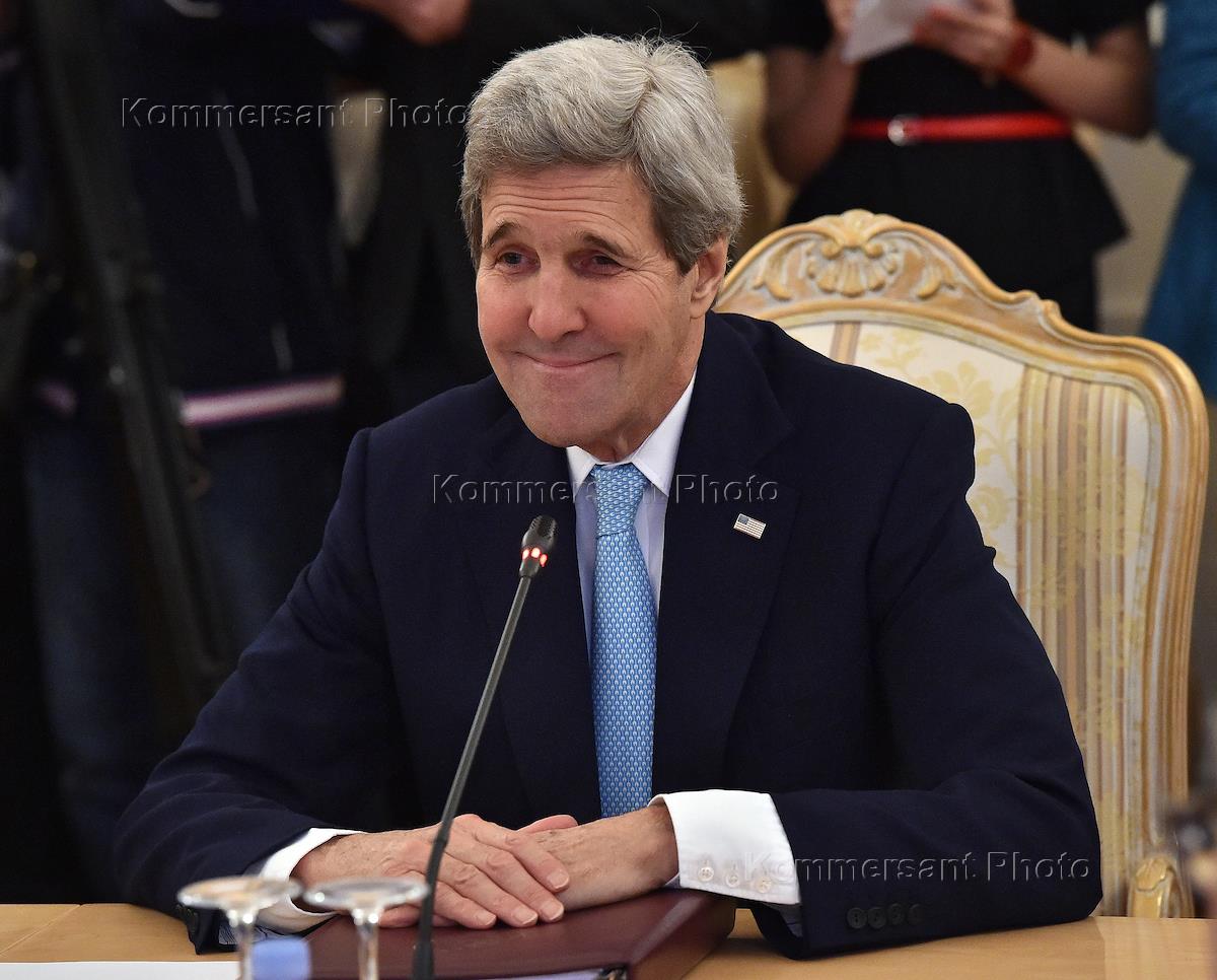 Государственный секретарь США Джон Керри во время переговоров с министром иностранных дел (МИД) России Сергеем Лавровым в Доме приемов МИД.