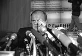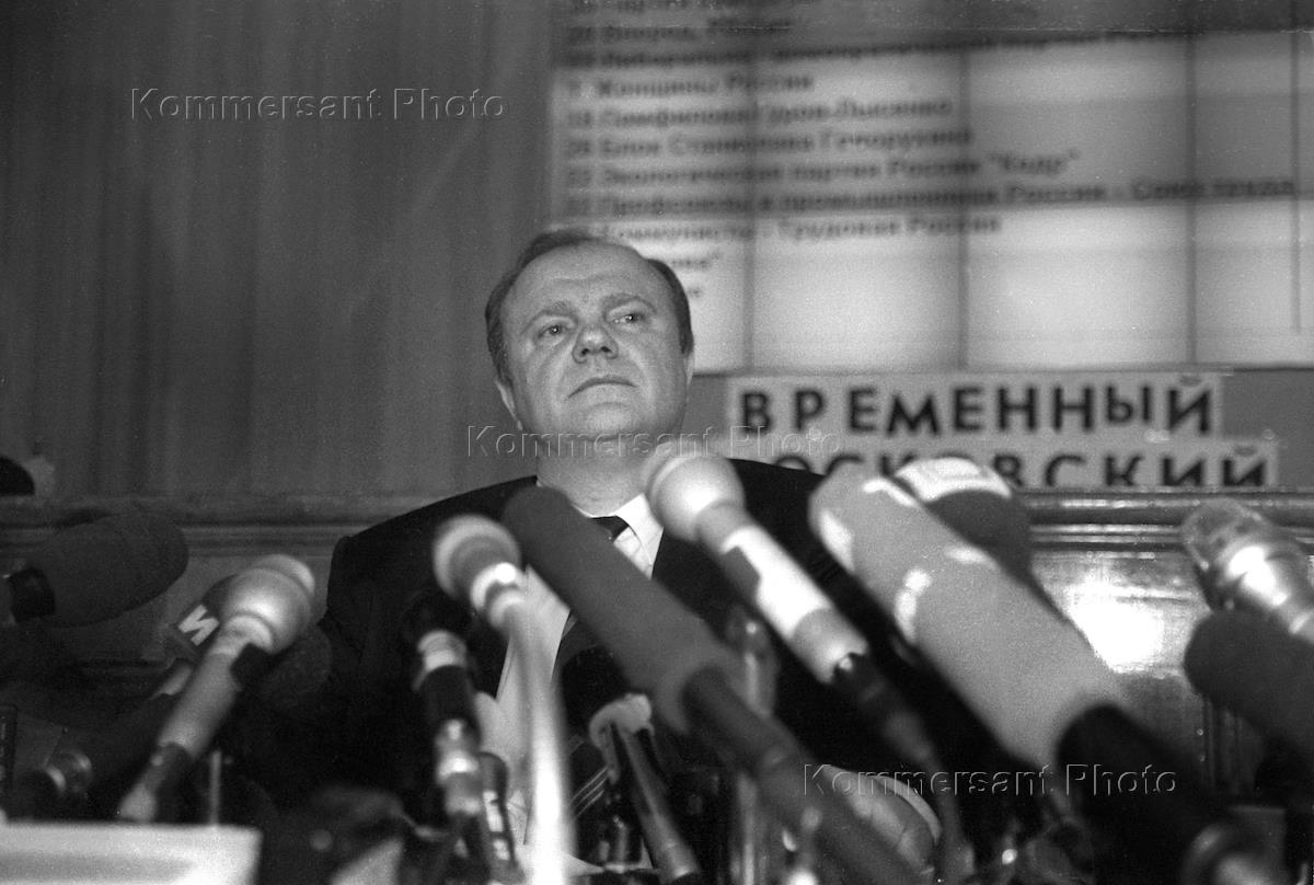 Лидер Коммунистической партии России (КПРФ) Геннадий Зюганов на пресс-конференции, посвященной выборам в Государственную думу России. Пресс-конференция прошла в Избирательной комиссии (Избирком) России.