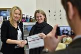 Совместный интерактивный проект ИД "Коммерсантъ" и банка ВТБ24 "Ниша на миллиард". Член правления ВТБ24, директор департамента обслуживания клиентов малого бизнеса Надия Черкасова (справа) во время церемонии награждения победителей в банке ВТБ24.