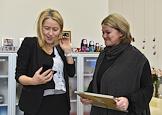 Совместный интерактивный проект ИД "Коммерсантъ" и банка ВТБ24 "Ниша на миллиард". Член правления ВТБ24, директор департамента обслуживания клиентов малого бизнеса Надия Черкасова (слева) и директор по развитию проекта "АРТ-личность" Ольга Заболотская (справа) во время церемонии награждения победителей в банке ВТБ24.