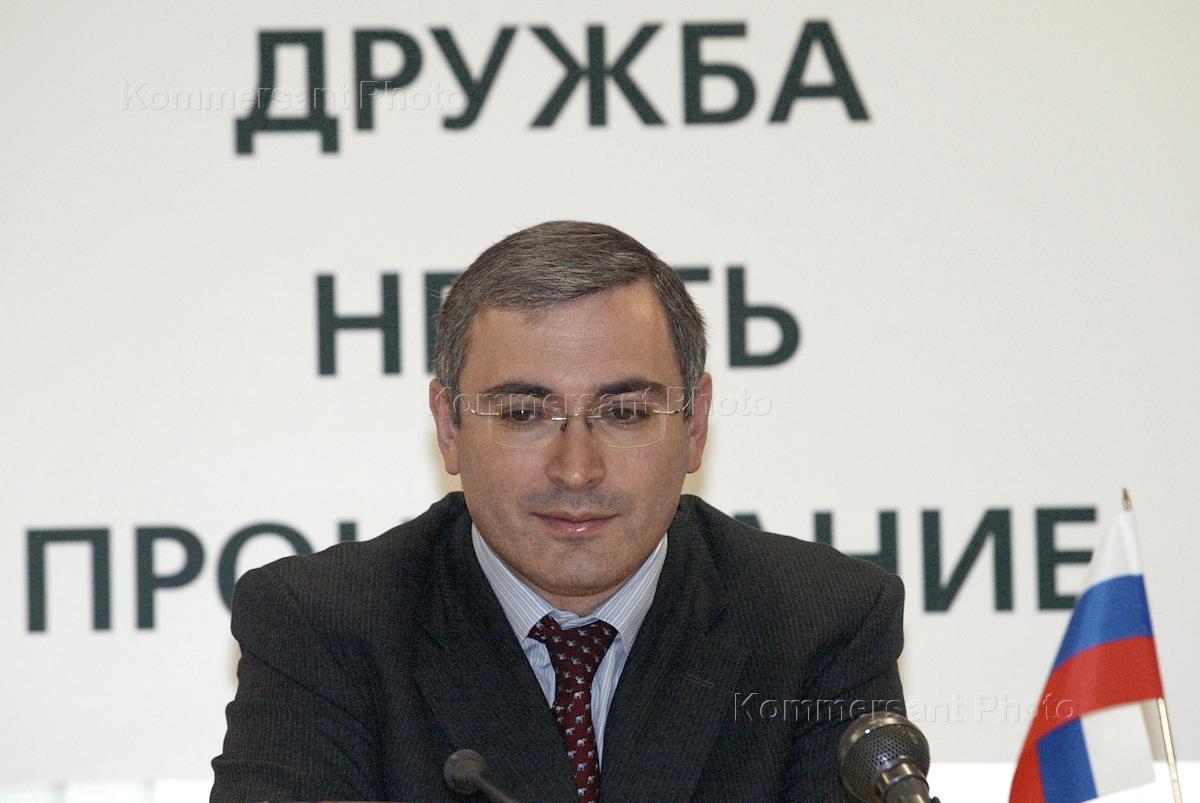 Chairman of the Yukos oil company governance board Mikhail Khodorkovsky attends the ceremony of signing a deal with the Chinese National Oil Company. the event took place in the Yukos headquarters.