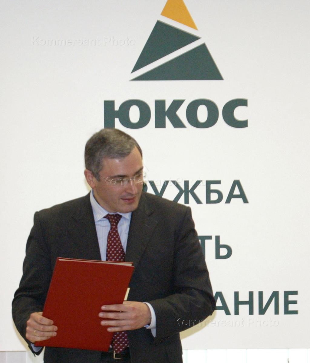 Chairman of the Yukos oil company governance board Mikhail Khodorkovsky attends the ceremony of signing a deal with the Chinese National Oil Company. the event took place in the Yukos headquarters.