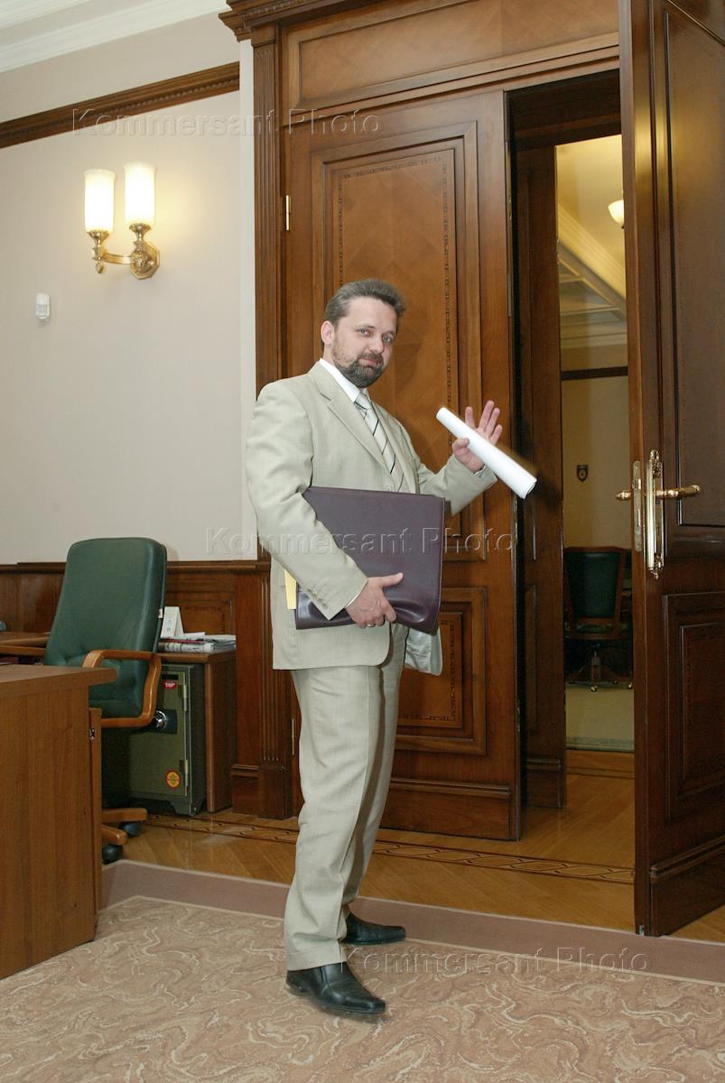 Deputy chairman of the Russian Central Bank Andrey Kozlov is interviewed in his office.