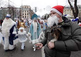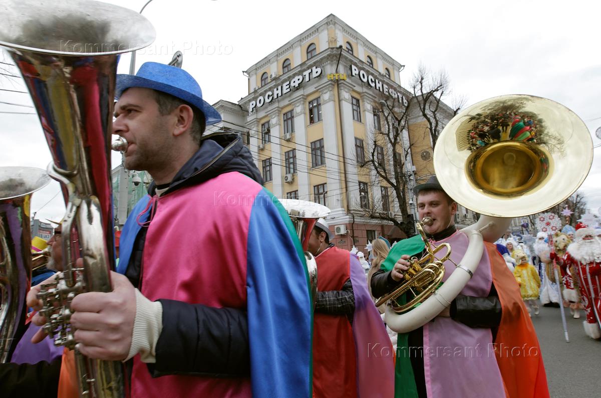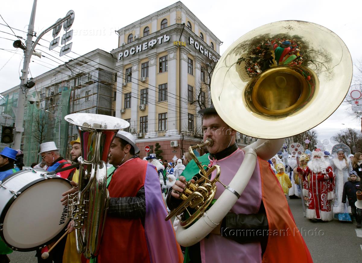 Парад Дедов Морозов "Новогодняя звезда-2016", организованный министерством культуры Краснодарского края, прошел по улице Красной.