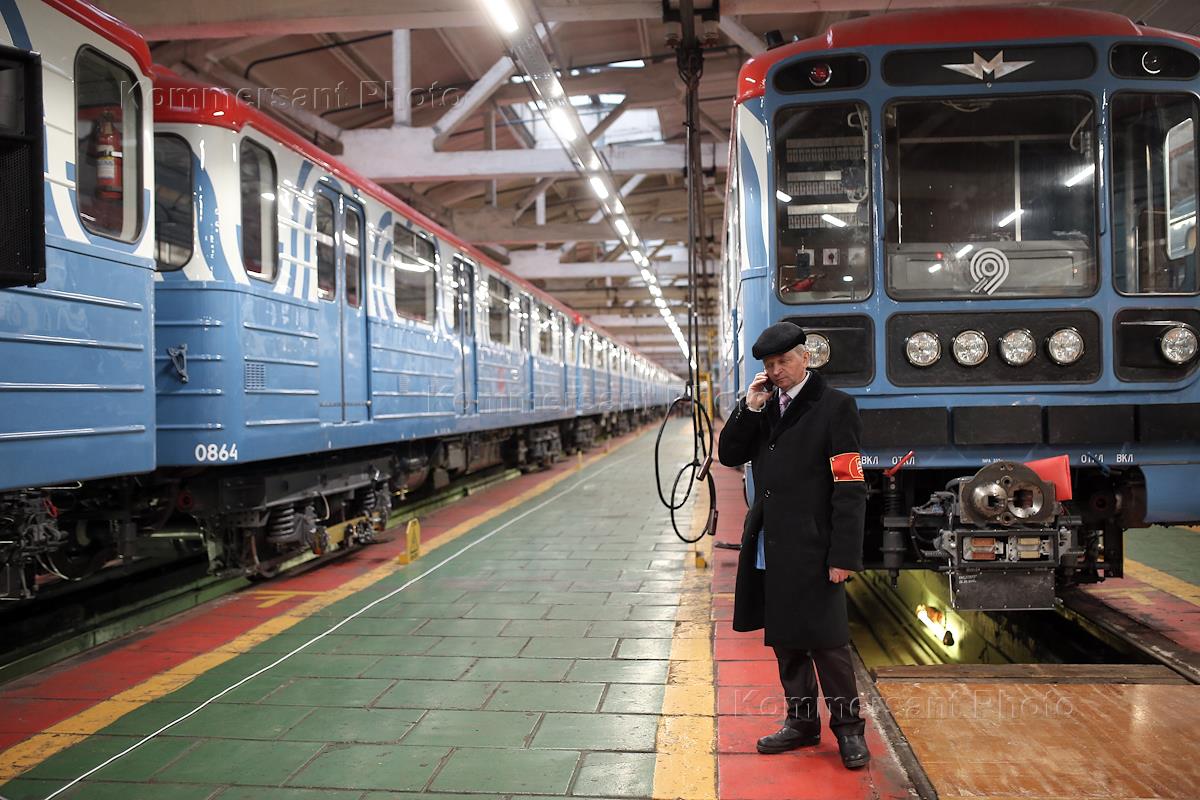 Церемония запуска именного поезда "Читающая Москва" на Калужско-Рижской линии московского метрополитена. Поезда в депо.