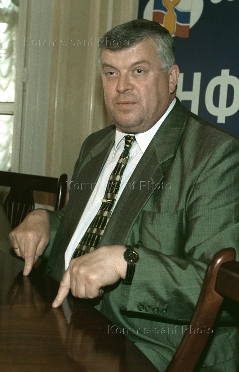 Chairman of the Federation Council (upper house of parliament) CIS Affairs Committee Vadim Gustov is interviewed at a news conference in the Central Journalist House.