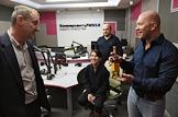 Запись новогоднего эфира на радиостанции "Коммерсантъ-FM". Слева направо: зкономический редактор редакции журнала "Деньги" Максим Кваша, заведующая отделом внешней политики газеты "Коммерсантъ" Елена Черненко, ее первый заместитель Максим Юсин и генеральный продюсер радиостанции "Коммерсантъ FM" Анатолий Кузичев перед началом эфира.