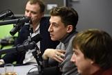 Запись новогоднего эфира на радиостанции "Коммерсантъ-FM". Корреспондент Григорий Туманов (в центре) во время эфира.