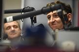 Запись новогоднего эфира на радиостанции "Коммерсантъ-FM". Генеральный продюсер радиостанции "Коммерсантъ FM" Анатолий Кузичев (слева) во время эфира.