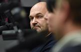 Запись новогоднего эфира на радиостанции "Коммерсантъ-FM". Заведующий отделом культуры газеты "Коммерсантъ" Юрий Яроцкий во время эфира.