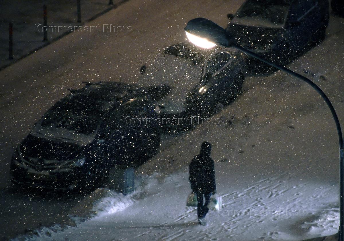 Жанровая фотография. Снегопад в Москве. Мякинино.