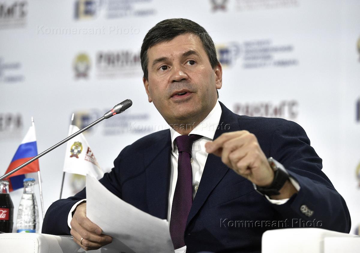 Гайдаровский форум 2016 "Россия и мир: взгляд в будущее" прошел в Российской академии народного хозяйства и государственной службы при президенте России. Директор Фонда развития промышленности Алексей Комиссаров во время форума.