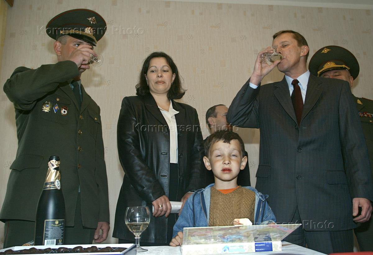 Министр обороны Сергей Иванов (слева) и вице-мэр Москвы Валерий Шанцев (справа) на торжествах по случаю ввода в эксплуатацию комплекса служебного жилья для офицеров частей постоянной готовности, реконструированного на средства правительства Москвы. Торжества прошли в поселке Калининец (Московская область) во 2-й гвардейской Таманской мотострелковой дивизии.