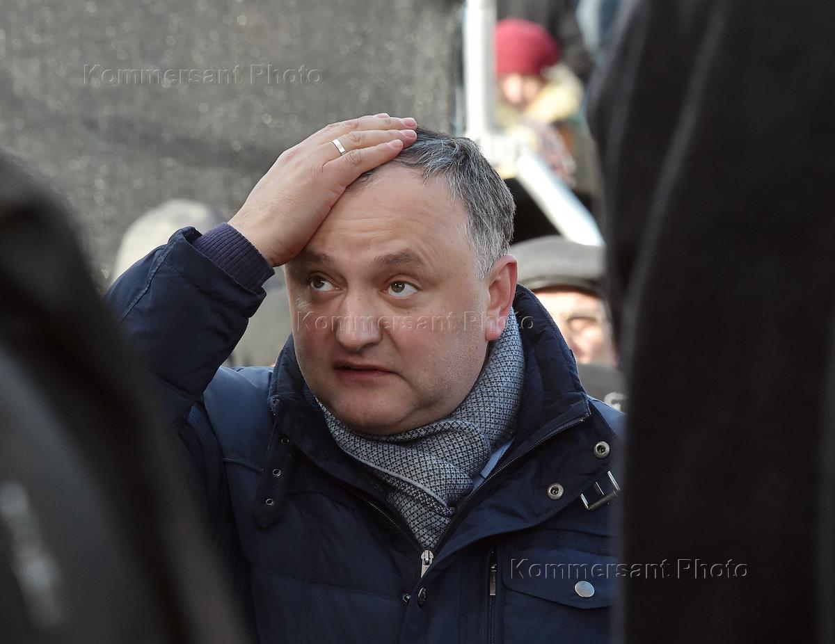Политическая обстановка в Кишиневе. Акция протеста против нового правительства во главе с бывшим министром связи Молдовы Павлом Филипом прошла у здания Парламента Молдовы. Лидер Партии социалистов Республики Молдова Игорь Додон во время митинга.