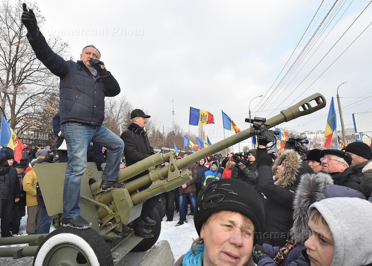 Политическая обстановка в Кишиневе. Акция протеста против нового правительства во главе с бывшим министром связи Молдовы Павлом Филипом прошла у здания Парламента Молдовы. Лидер Партии социалистов Республики Молдова Игорь Додон во время митинга.