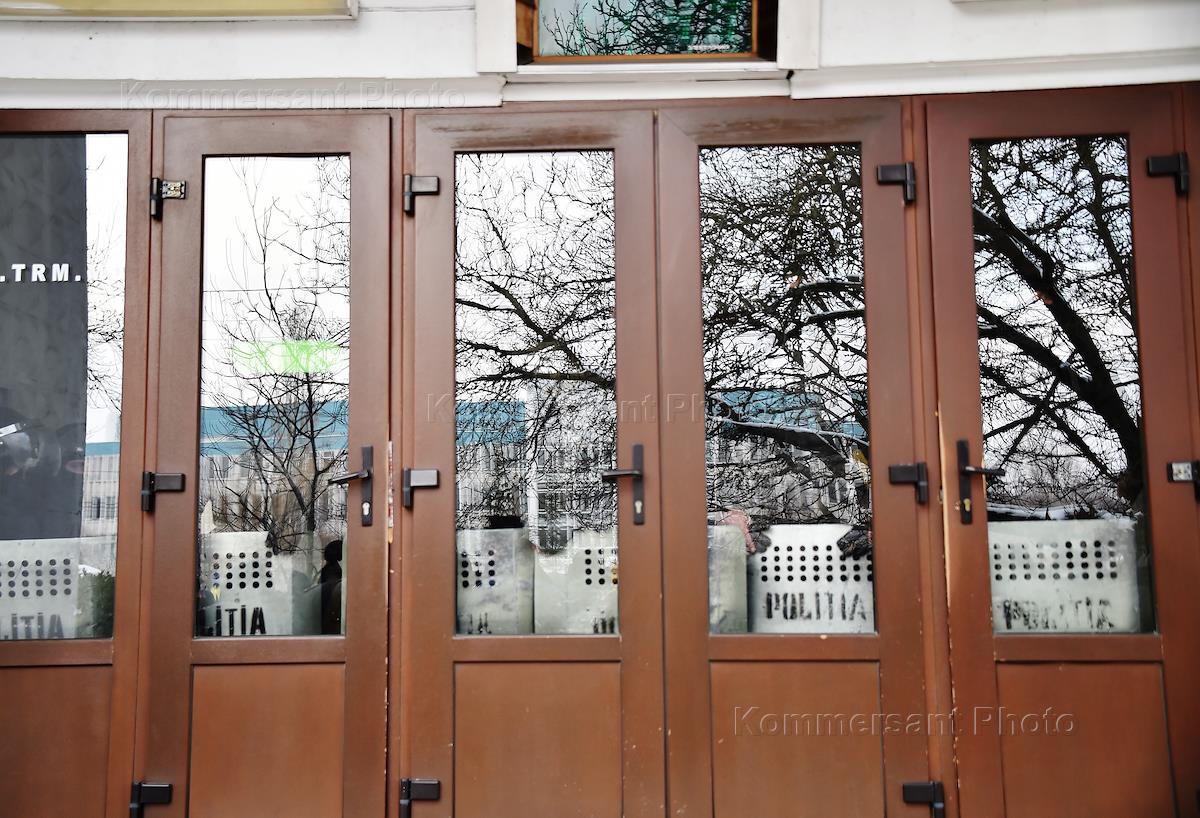 Политическая обстановка в Кишиневе. Сотрудники правоохранительных органов во время акции протеста против нового правительства во главе с бывшим министром связи Молдовы Павлом Филипом у здания Парламента Молдовы.