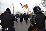 Политическая ситуация в Кишиневе. Сотрудники правоохранительных органов во время антиправительственного митинга в центре Кишинева.