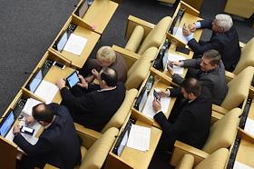 Пленарное заседание Государственной думы России. Депутаты во время заседания.