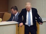 Член комитета Государственной думы России по природным ресурсам, природопользованию и экологии Дмитрий Савельев (слева) во время заседания Госдумы.