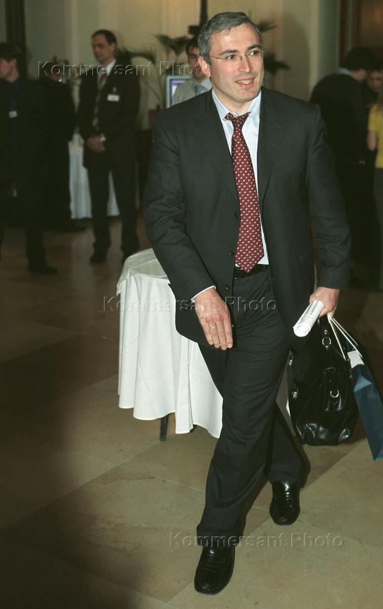 Председатель правления НК ЮКОС Михаил Ходорковский садится в машину после открытия ежегодной конференция инвесторов группы "Ренессанс Капитал" в Торгово-промышленной палате России.