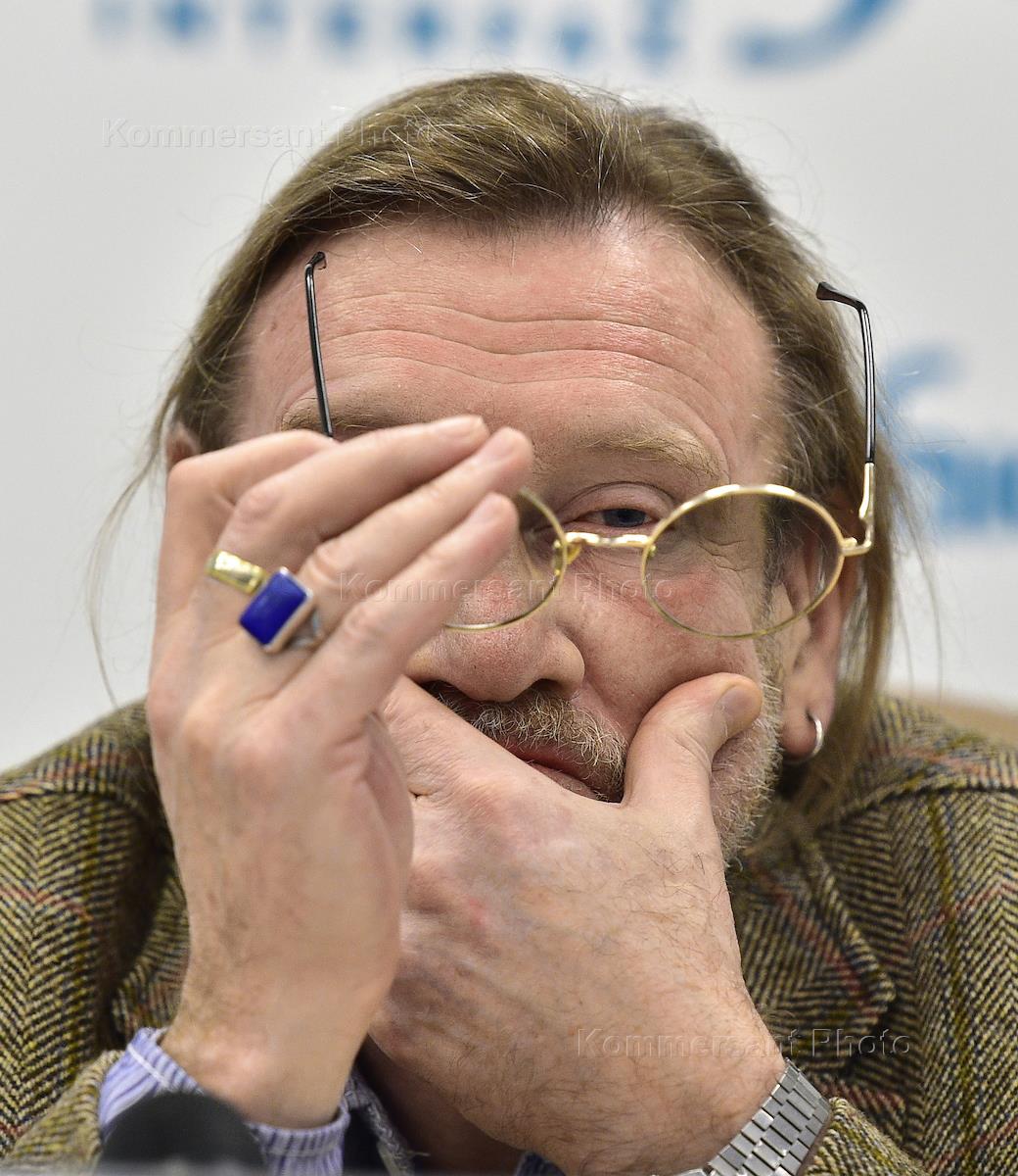 Член Совета при президенте России по развитию гражданского общества и правам человека (СПЧ), секретарь Общероссийской общественной организации "Союз журналистов России" Леонид Никитинский во время пресс-конференции на тему: "План работы СПЧ на 2016 год". Пресс-конференция прошла в центральном офисе агентства "Интерфакса".