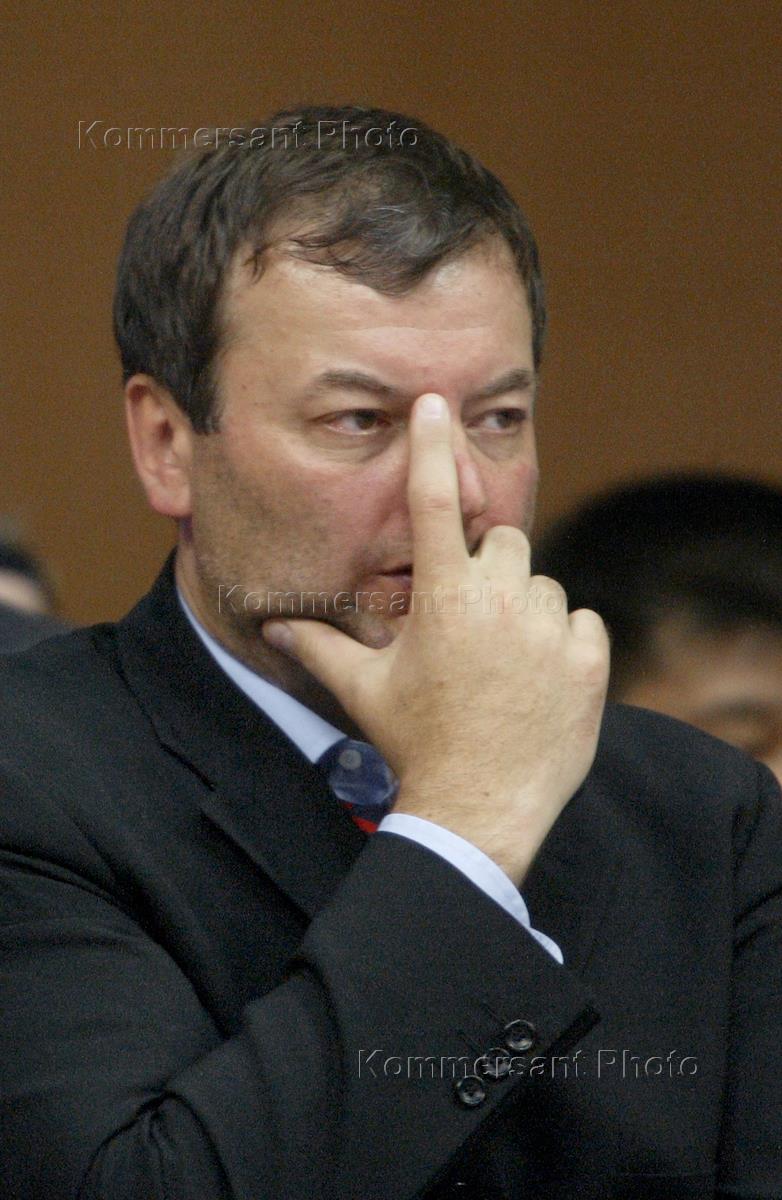 Генеральный менеджер российской сборной по баскетболу Сергей Кущенко наблюдает за игрой баскетболистов во время матча команд "ЦСКА" и "Урал-Грейт". Матч состоялся в спорткомплексе ЦСКА.