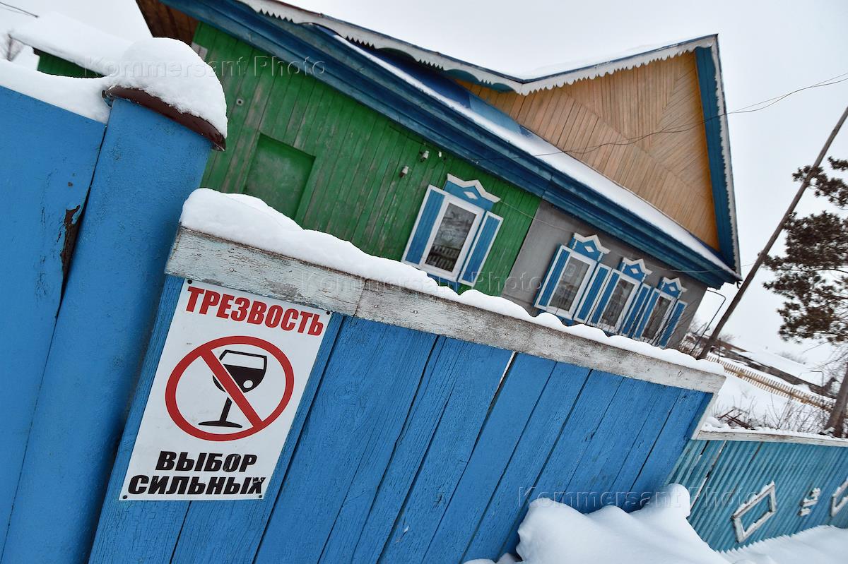 Республика Башкортостан. Виды города Мелеуза. Вывеска на заборе жилого дома "Трезвость - выбор сильных".