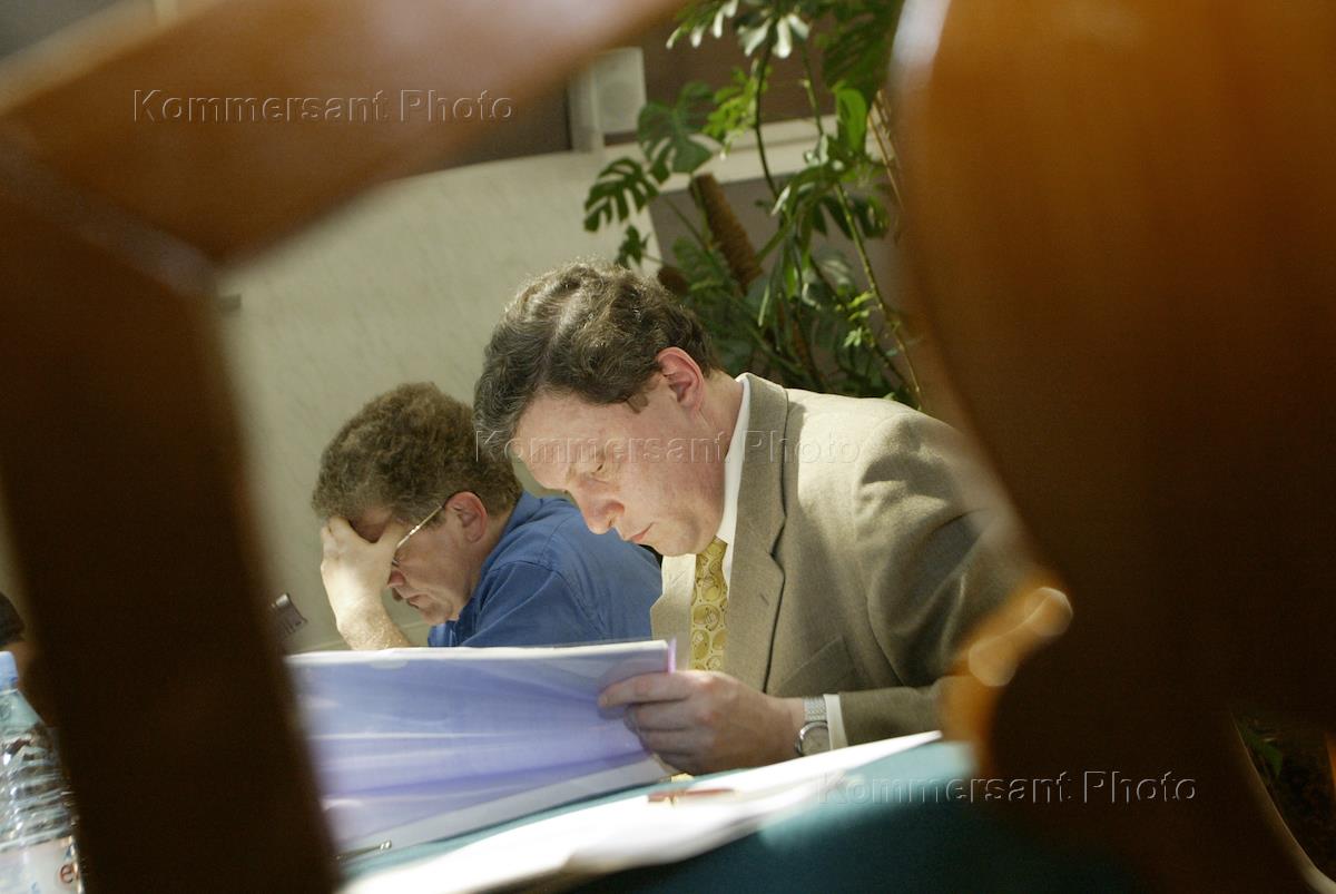 Руководитель фракции "Яблоко" Григорий Явлинский (справа) во время заседания клуба "Открытый форум" на тему: "Дума и правительство: формула ответственности". Заседание прошло в гостинице "Савой".