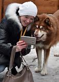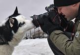 Реабилитационная программа для детей и подростков с ограниченными возможностями здоровья "По пути с Хаски" в Парке культуры и отдыха (ПКиО) "Сокольники". Жанровая фотография. Фотограф снимает собаку.