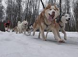 Реабилитационная программа для детей и подростков с ограниченными возможностями здоровья "По пути с Хаски" в Парке культуры и отдыха (ПКиО) "Сокольники". Собаки в упряжке.