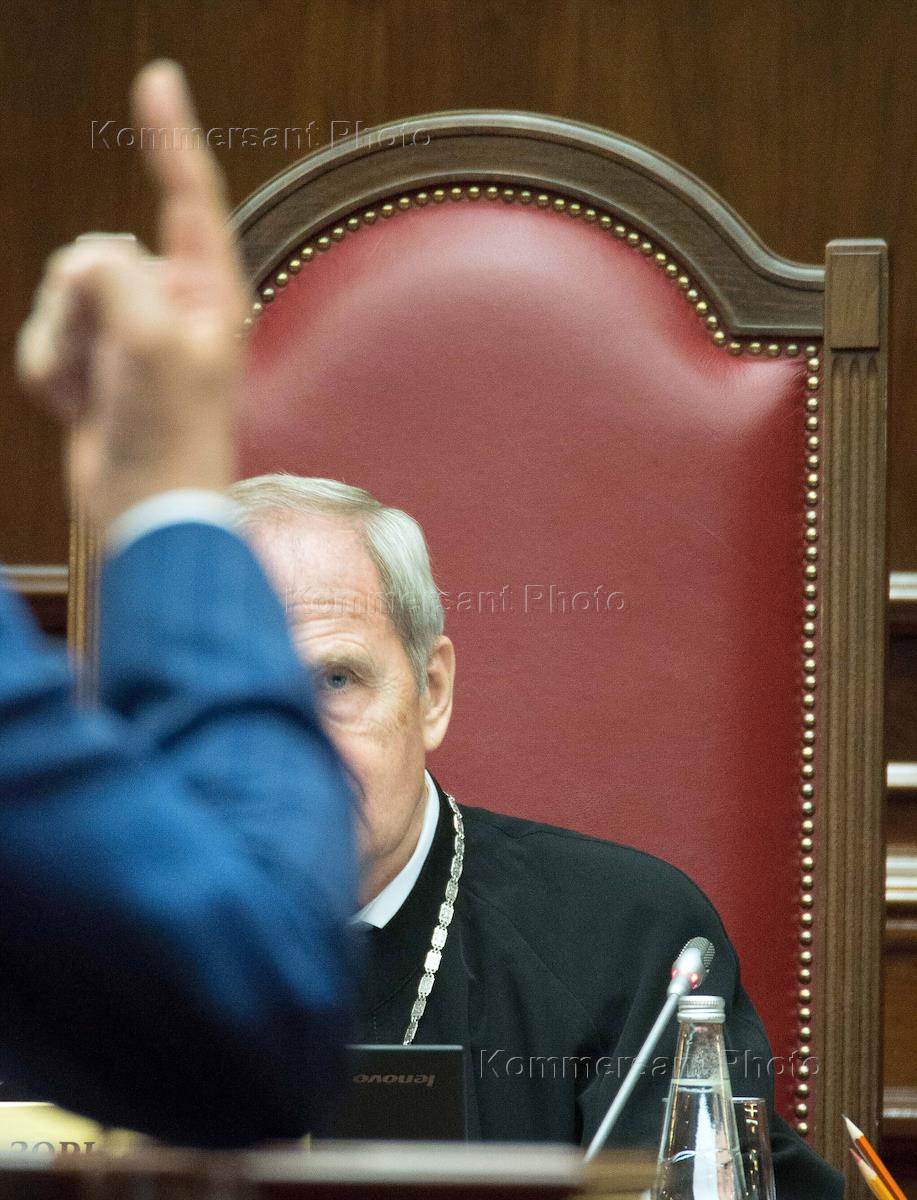 Судья Конституционного суда (КС) России Александр Кокотов во время открытого заседании КС России по рассмотрению дела "о проверке конституционности пункта 1 части 3 статьи 31 Уголовно-процессуального кодекса РФ в связи с жалобой гражданки А.С. Лымарь".