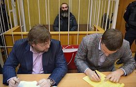 Бизнесмен, бывший деловой партнер основателя сети магазинов "Спортмастер" Рашид Бозиев (в центре) во время заседанияв Хамовнического районного суда Москвы. Бозиев обвиняется в убийстве в своей квартире юриста Олега Кузнеца, который вместе с судебными приставами описывал имущество Бозиева для погашения долга в размере более 166,8 млн руб.