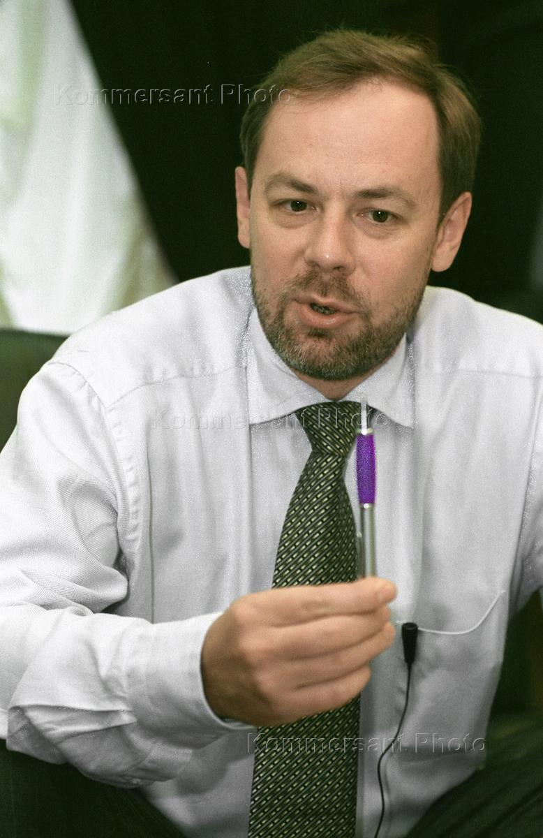 Director general of Video International company Sergey Vasilyev is interviewed in his office.