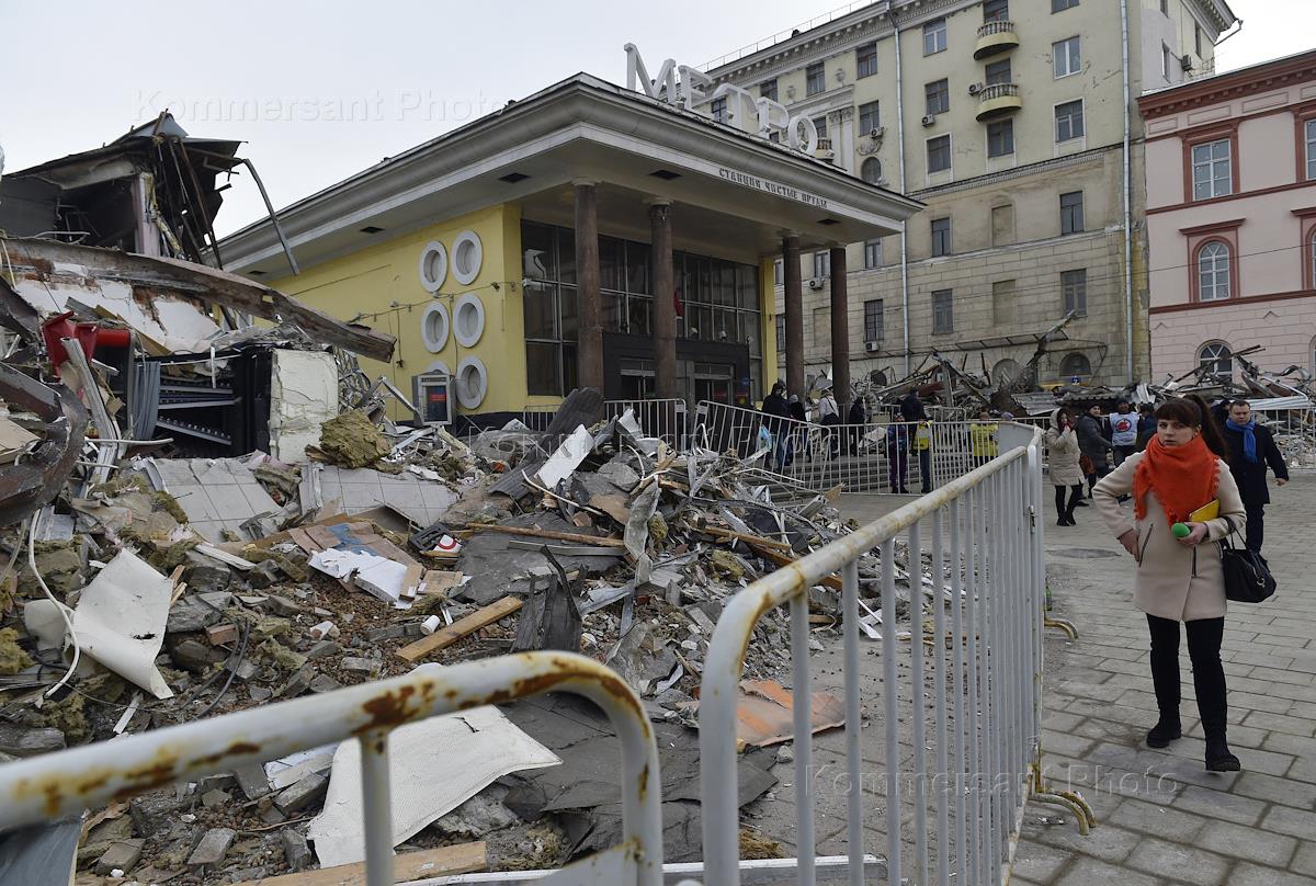 Снос торговых павильонов у станции метро "Кропоткинская".