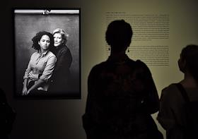 Посетители на церемонии открытия XI Международного месяца фотографии в Москве "Фотобиеннале-2016" в Мультимедиа Арт Музее. Выставка работ фотографа Энни Лейбовиц (Annie Leibovitz).