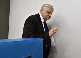 Лидер партии "Справедливая Россия", член комитета Государственной думы России по жилищной политике и жилищно-коммунальному хозяйству Сергей Миронов во время пресс-конференции, в агентстве "Интерфакс".