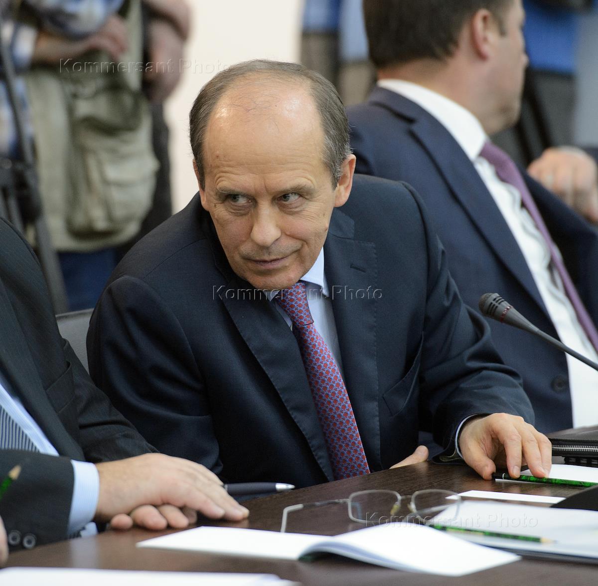 Рабочая поездка президента России Владимира Путина в Республику Татарстан. Директор ФСБ Александр Бортников перед началом заседания Военно-промышленной комиссии (ВПК) в Набережных Челнах.