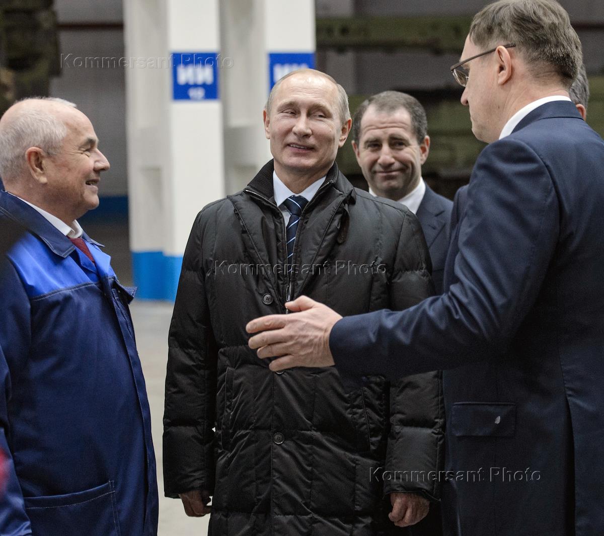 Рабочая поездка президента России Владимира Путина в Республику Татарстан. Президент России Владимир Путин (в центре), генеральный директор ПАО "КамАЗ" Сергей Когогин (справа) во время осмотра "Завода специальных автомобилей" ПАО "КамАЗ".