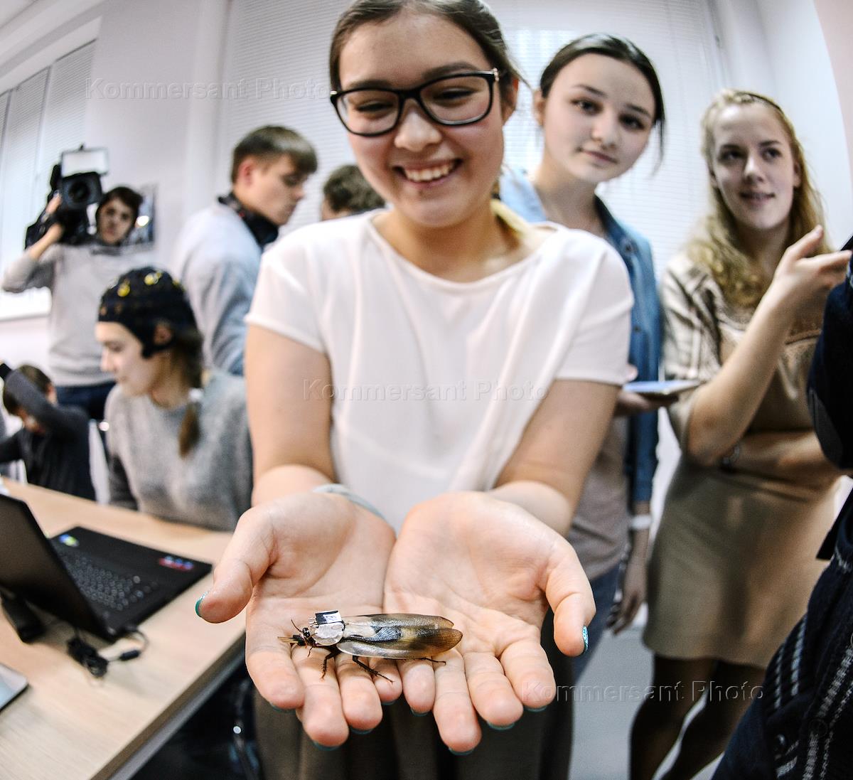 Жанровая фотография. Насекомое на ладошке девушки в технопарке "ИТ-парк", первого в Татарстане детского технопарка "Кванториум".