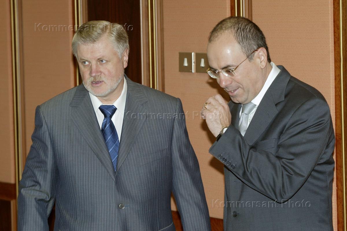 Председатель Совета Федерации (СФ) России Сергей Миронов (слева) и министр иностранных дел Израиля Сильван Шалом (справа) во время встречи в здании СФ.