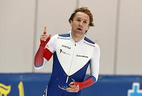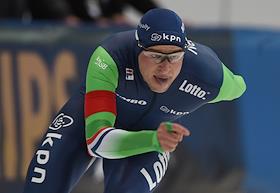 Чемпионат мира по конькобежному спорту 2016 в Коломне. Конькобежец Свен Крамер (Нидерланды) после забега среди мужчин на 5000 метров в соревнованиях по конькобежному спорту на отдельных дистанциях.