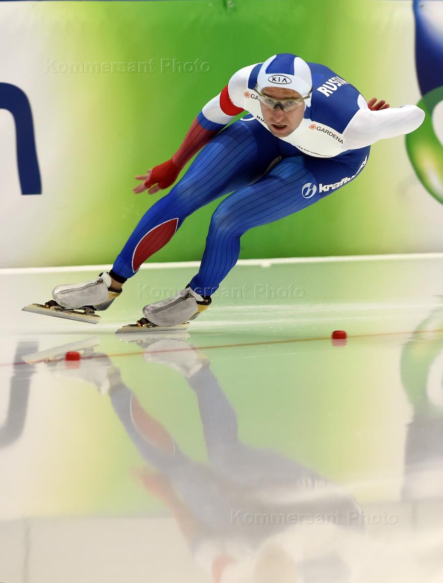 Чемпионат мира по конькобежному спорту 2016 в Коломне. Российский конькобежец Иван Скобрев на стадионе конькобежного центра "Коломна".