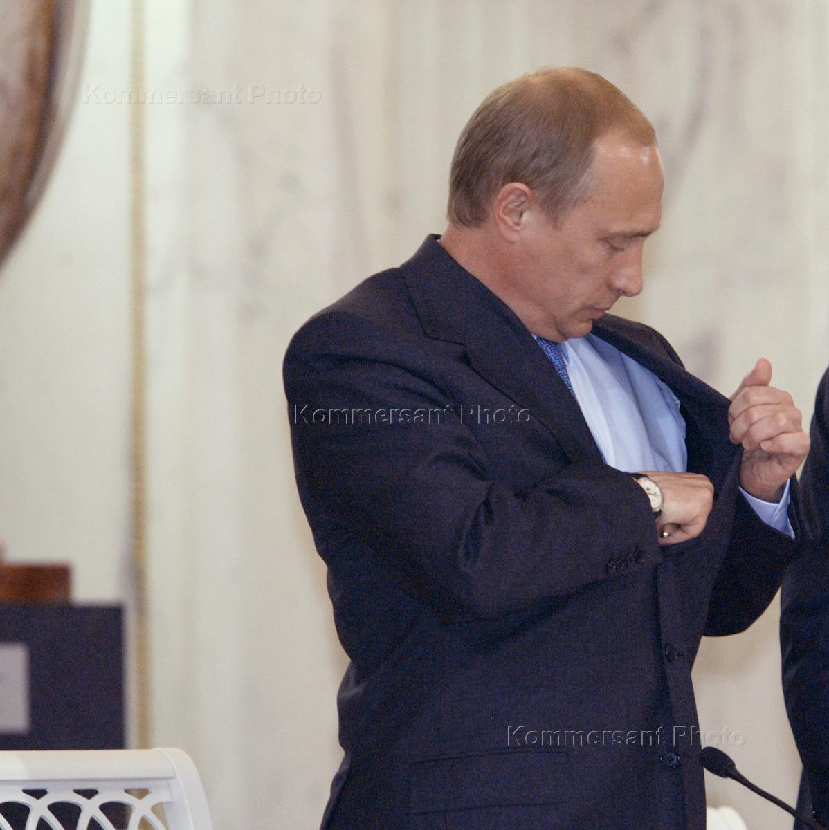 Russian Prime Minister Mikhail Kasyanov (left) and President Vladimir Putin (right) ateks part in the St.-Petersburg meeting of the Gossovet ('State Council' - supreme political consultancy body). The event took place in the State Hermitage Museum.