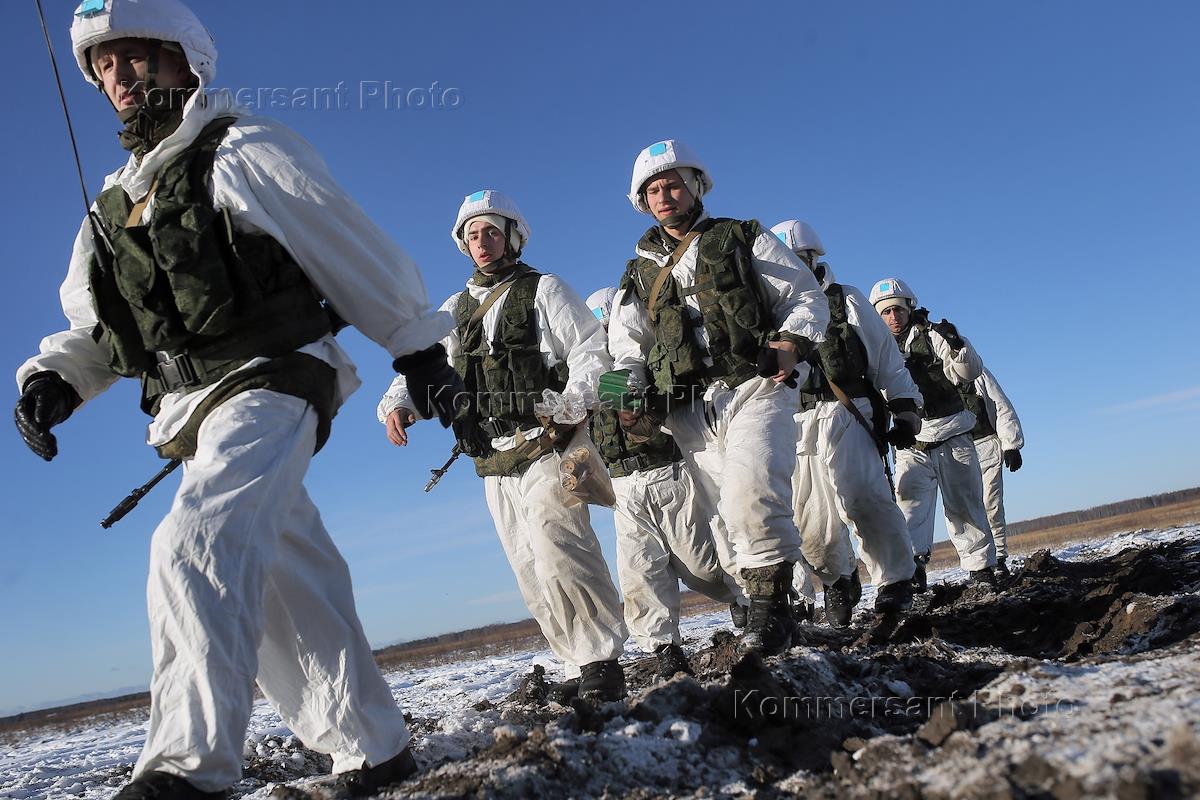 Военнослужащие Воздушно-десантных войск (ВДВ) Вооруженных Сил России во время масштабных командно-штабных учении в Псковской области.