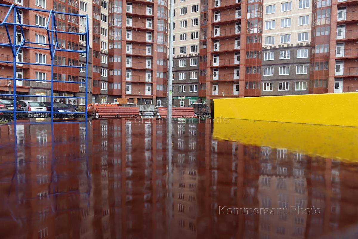 Жанровая фотография. Новостройки Ленинградской области. Детская площадка в воде.