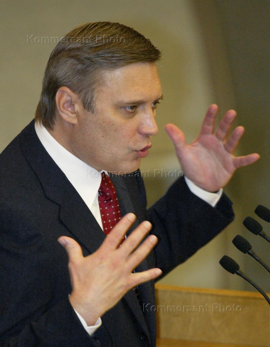 Russian Prime Minister Mikhail Kasyanov addresses law-makers during a session of the State Duma.