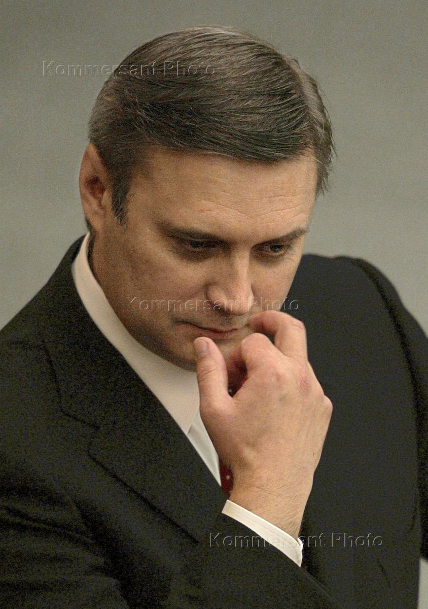 Председатель Правительства России Михаил Касьянов во время выступления перед депутатами во время заседания Государственной Думы России.