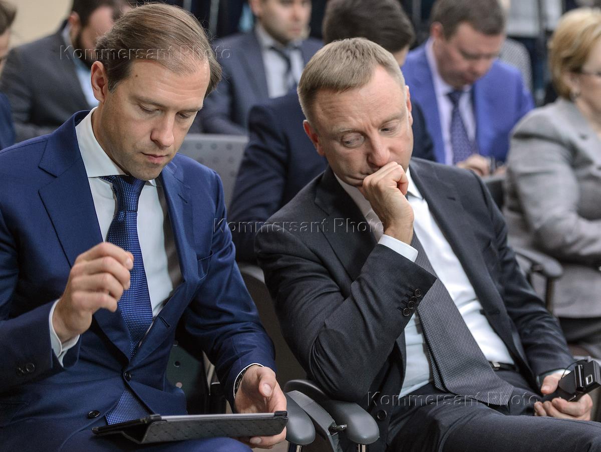 Министр промышленности и торговли России Денис Мантуров перед началом совместной пресс-конференции президента России Владимира Путина и премьер-министра Венгрии Виктора Орбана в подмосковной резиденции Ново-Огарево.
