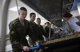 Рязанское высшее воздушно-десантное командное училище имени генерала армии В.Ф. Маргелова. Курсанты училища в столовой во время обеда.