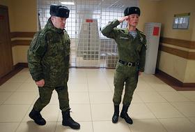 Рязанское высшее воздушно-десантное командное училище имени генерала армии В.Ф. Маргелова. Курсант училища во время дежурства приветствует офицера.